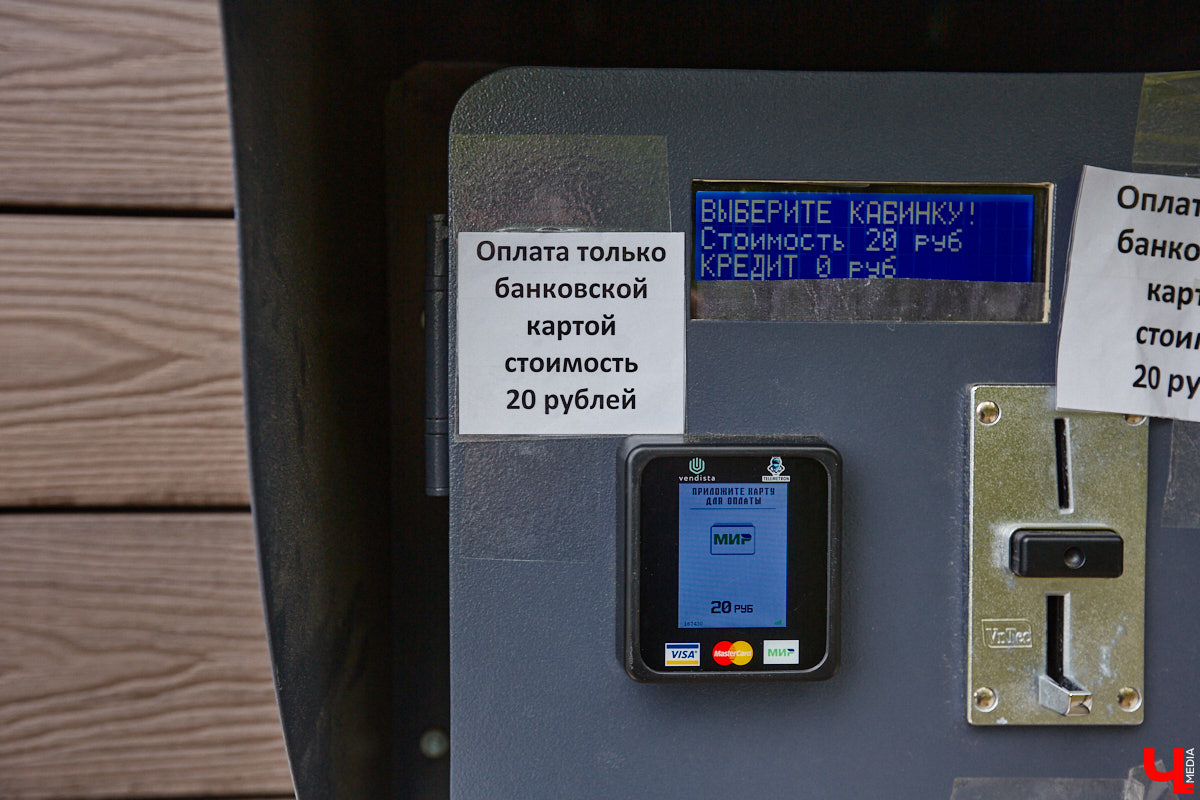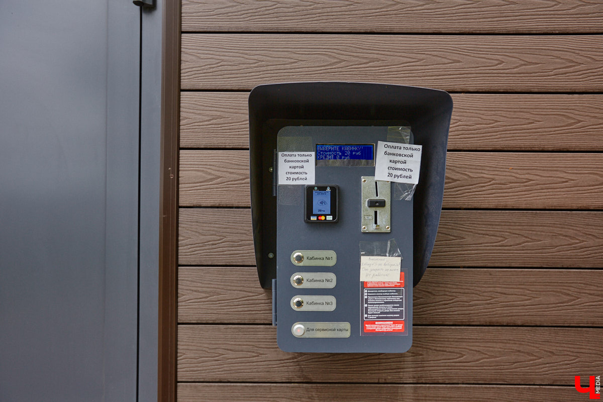 Конечно, за комфорт придется заплатить, к счастью, сумма невелика — 20 рублей за одно посещение. Дешевле, чем, например, в Суздале, где та же услуга оценивается в 30 рублей. Для внесения средств потребуется банковская карта — наличный расчет не подразумевается. После списания денег необходимо выбрать номер санузла — и его двери откроются. Правда, уже сейчас механизм дает сбой. На клочке бумаги, приклеенной к терминалу, висит предупреждение: «Внимание! Кабинку № 3 не выбирать! Она закрыта на ключ. Не работает!» Так что в свободном доступе лишь две санитарно-гигиенические комнаты из трех. Внутри, по оценкам местных жителей, довольно комфортно, хотя назвать идеальной чистоту помещения все же весьма трудно. Да и с системой оплаты возникают сложности.