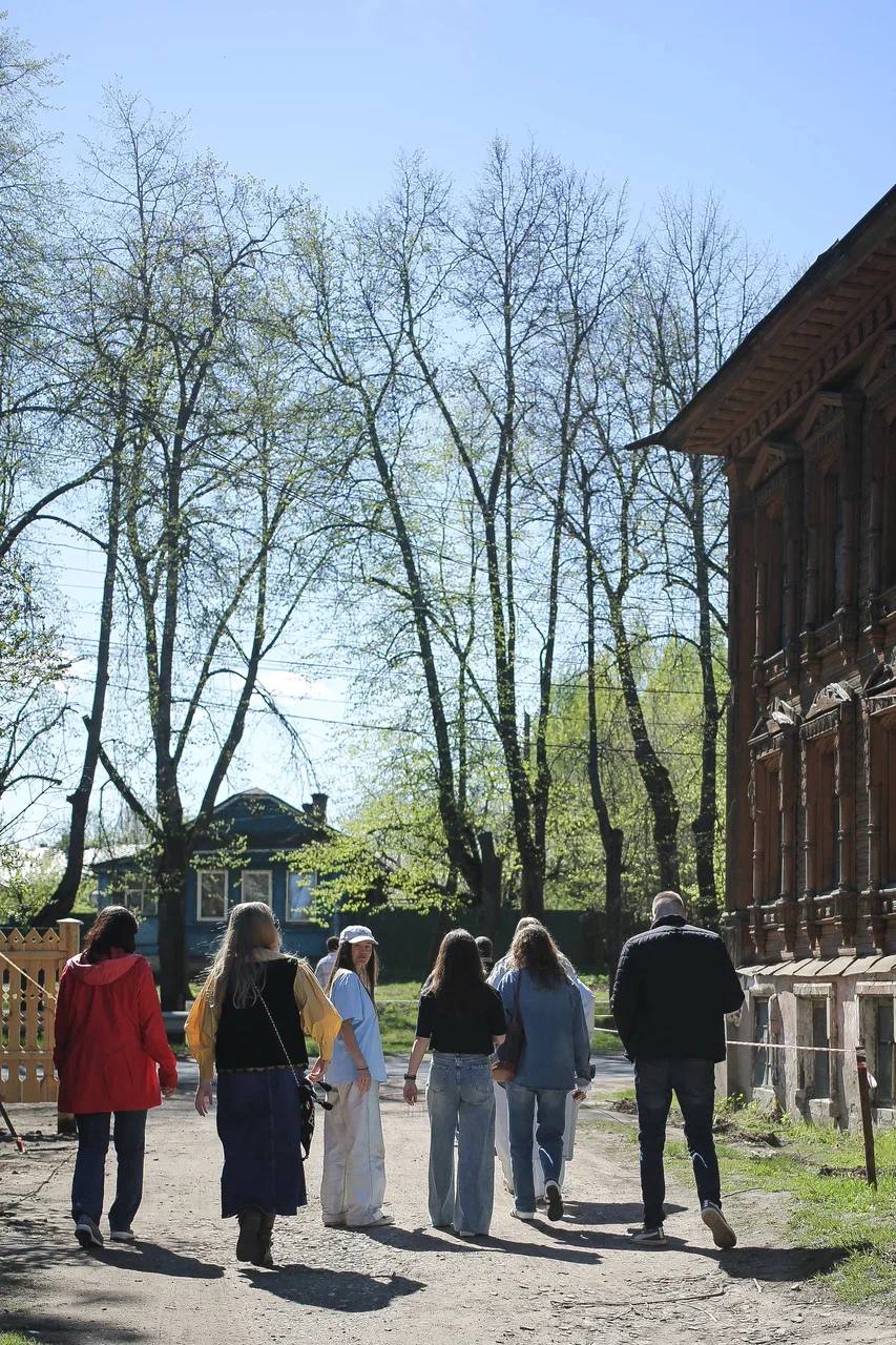 Первая остановка — поселок Мстёра, хранящий как старинные здания, так и живые ремесленные традиции. Участники тура смогли своими глазами увидеть не только шикарный проект Федора Савинцева по восстановлению комплекса зданий XIX века, но и то, как древние навыки — ковка, вышивка, резьба по дереву — живут и продолжают развиваться сегодня.