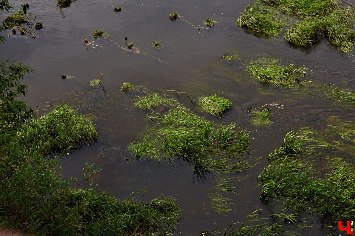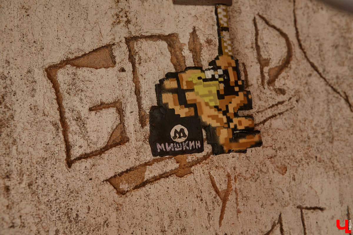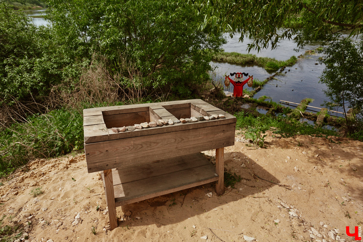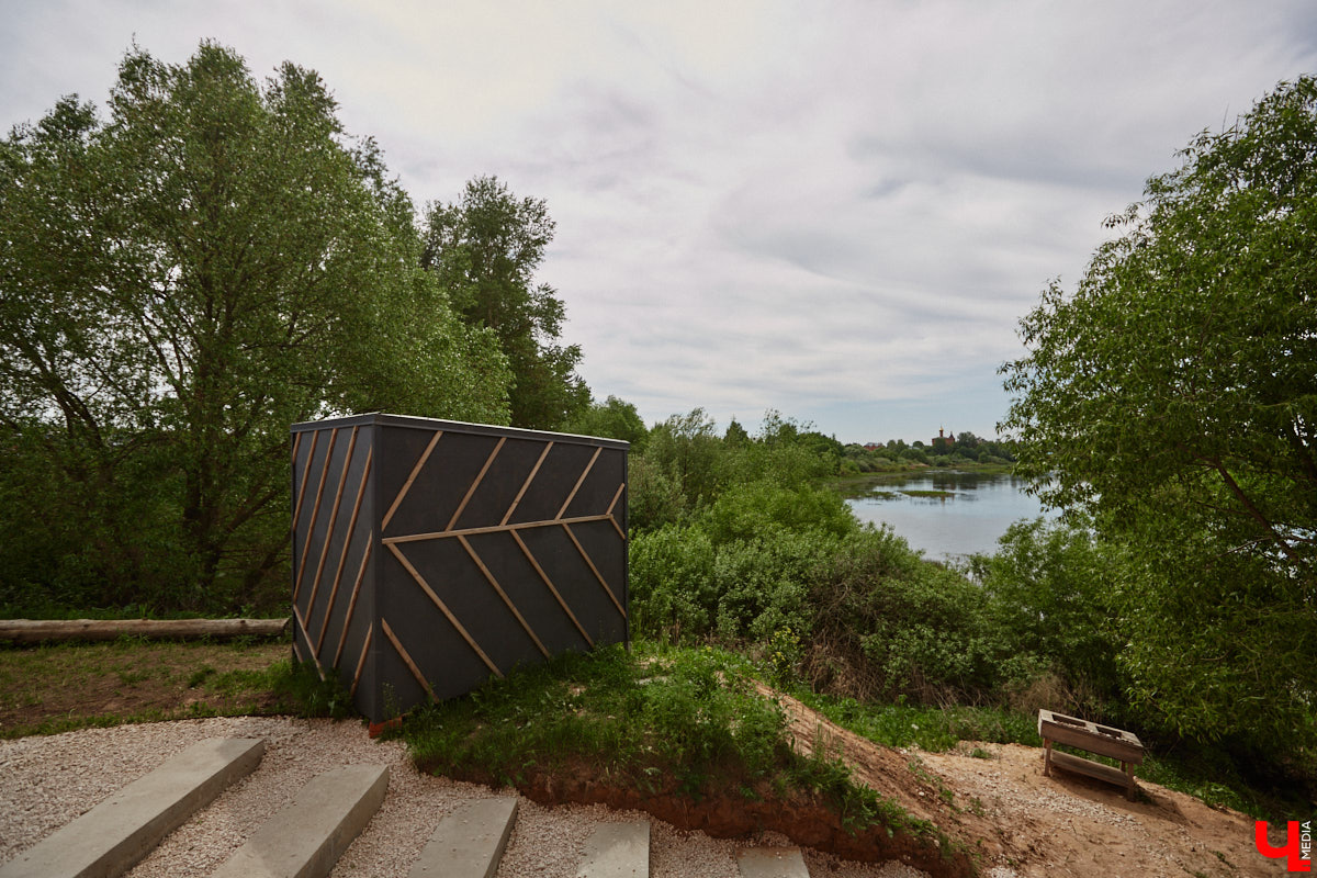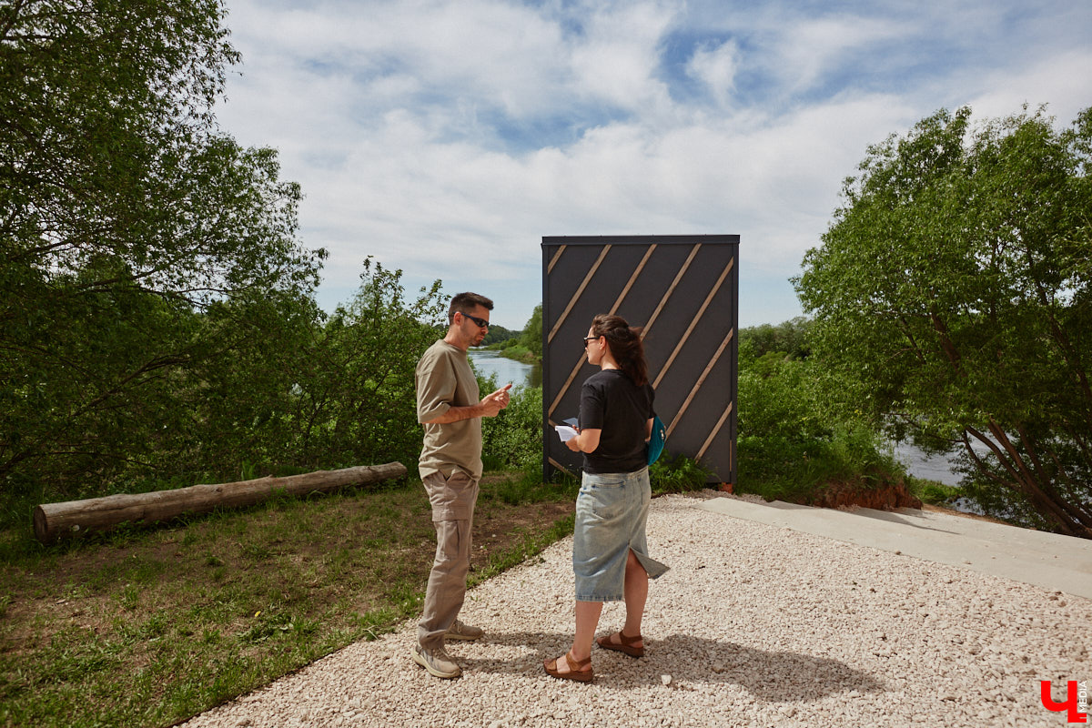 Рядом обосновалась полевая лаборатория от керамиста Елизаветы Комаровой, украсившей Владимир своими стрит-артами. Объект позволяет оставить отпечаток личного созерцания природы — для этого нужно поставить в вазу хрупкие композиции из полевых цветов. Чуть ниже, у воды, работа «Рыбная охота» райтера Мишкина. Пиксельная собака из восьмибитной игры, знакомой целому поколению, держит в лапах добычу. Правда, не утку, а рыбу, которой так богата Нерль.
