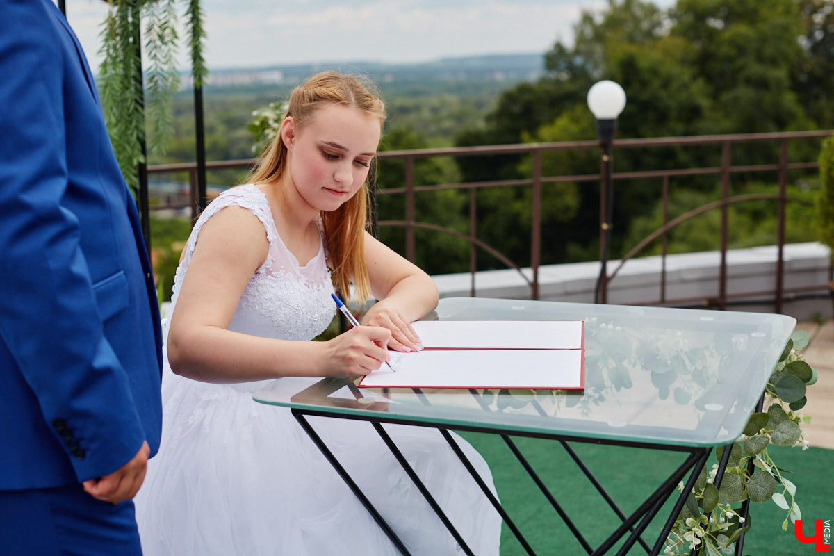 Не исключено, что в перспективе работать на свадьбе будут и музыканты. Звучание саксофона точно украсит церемонию. Ну а пока для проведения росписи закупили специальную аппаратуру. К слову, на случай дождя на балконе предусмотрен шатер, а для гостей церемонии — фирменные зонты. В крайнем варианте спрятаться от непогоды можно и в помещении.