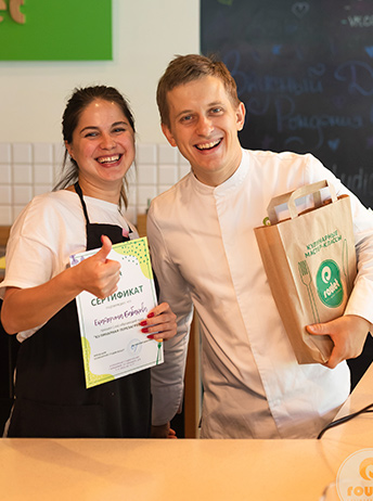 «Мы с мужем решились на эксперимент и вместе записались на кулинарные курсы. Любим вкусную и интересную кухню. Вообще, хотелось перезагрузить свои знания и узнать лайфхаки от настоящих кулинарных профессионалов. Мы делали домашнюю пасту, запекали перепелок и даже варили настоящий борщ! Можно сказать, прошли огонь и воду. Если честно, то мы с нетерпением ждали каждой встречи! Теплая и радушная атмосфера курса заставляла полностью отключиться от повседневной жизни и почувствовать себя „как дома“. Огромное спасибо всему коллективу студии! Вы делаете людей сытыми и счастливыми. Мы хотим еще!»