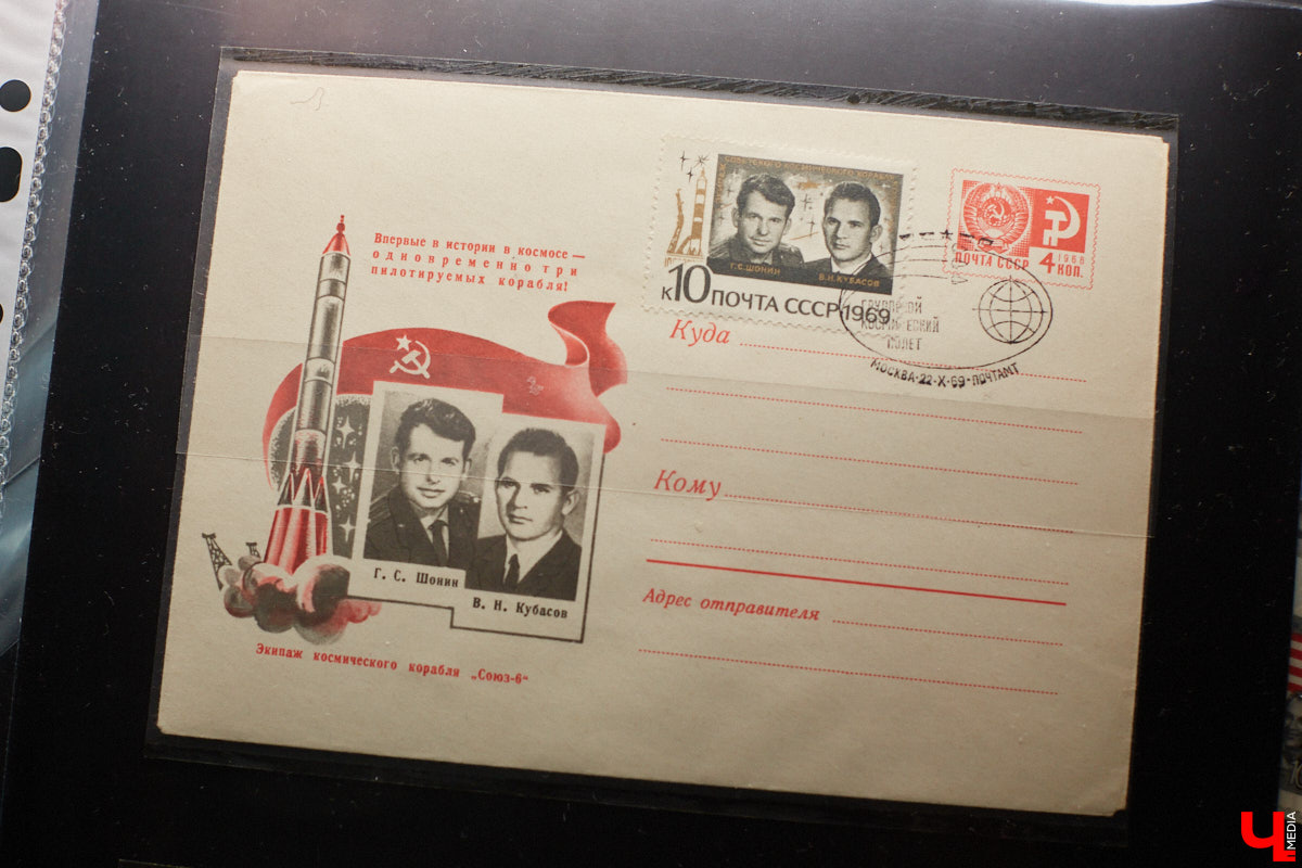 космонавтом из Вязников 1969 года, когда он совершил свой первый полет. А также серия „Союз — Аполлон“ с его фотографией, ведь Кубасов, как известно, был бортинженером на советском корабле. Кроме того, в коллекции можно увидеть конверты с портретом нашего земляка. Одни почтовые знаки выпущены в СССР и России, другие — за рубежом: в Либерии, Монголии, Республике Бурунди, Гренаде, — начинает повествование Александр. — Указание страны и номинала — два обязательных атрибута марки, которая является платежным средством для отправки письма или бандероли. Это такая же ценная бумага, как деньги, только предназначенная для более узкого использования».