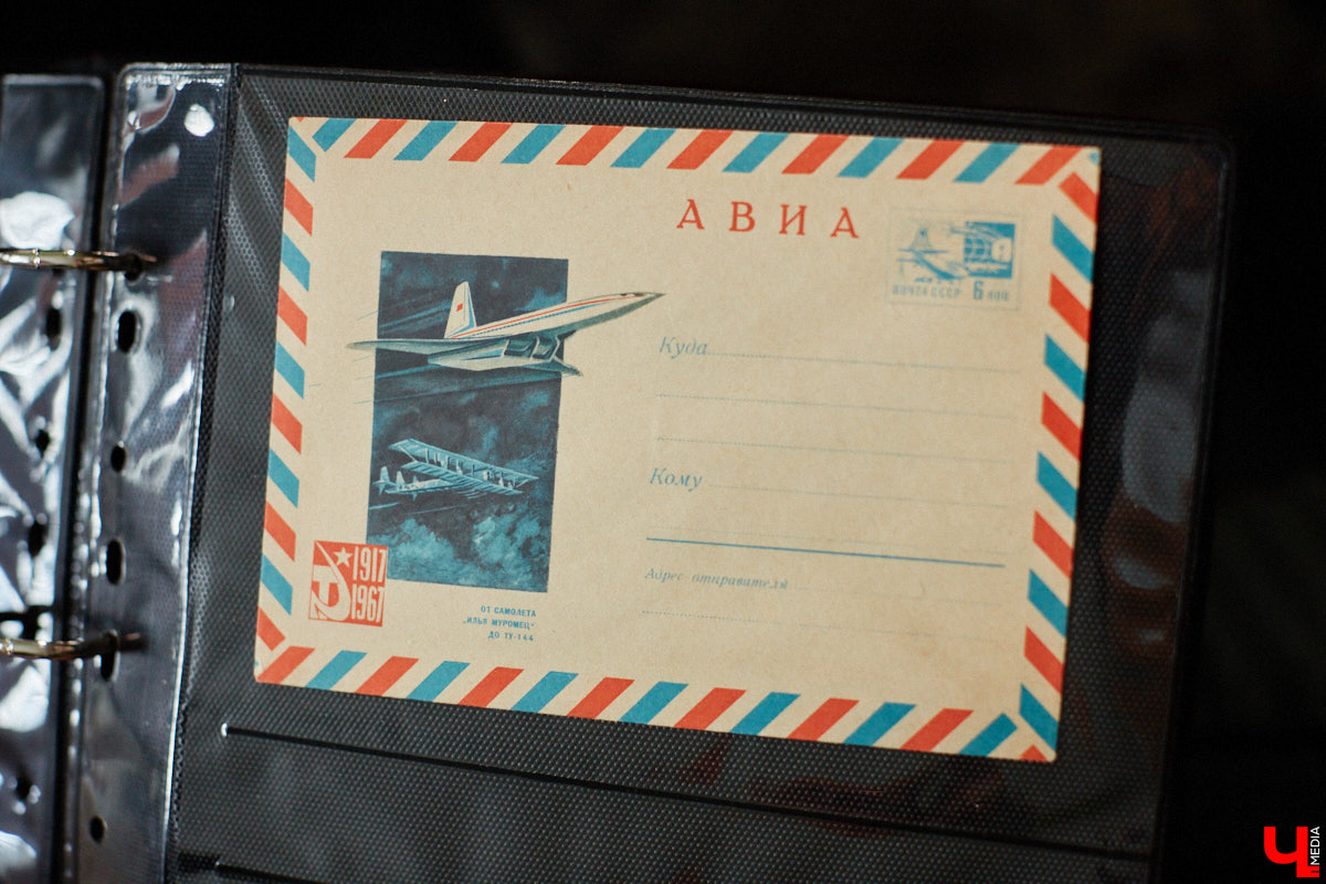 «У меня есть конверт даже с Юрием Долгоруким, и это не просто так. Он был князем ростово-суздальским, а значит, в моем понимании, имеет отношение к нашей области. На карточке с Антарктидой изображены станции, одна из них Новолазаревская. А один из ее открывателей, Михаил Лазарев, родился в нашем городе. Имеется конверт с двумя самолетами, первый реактивный, а второй — „Илья Муромец“. Я всем говорю, каждый коллекционер — президент своего государства и сам определяет правила. Мой широкий подход позволяет заниматься не просто филателией, но и краеведением, — отмечает Александр Корнилов. — Конечно, на большинстве конвертов узнаваемые персонажи и места, связанные с регионом. По ним можно отслеживать историю, например, раньше в центре стояла телевизионная вышка, которой сейчас уже нет, конструкция осталась только на фото. Бывают и конверты с ошибками, так, памятник вождю пролетариата вдруг оказался на площади 850-летия Владимира вместо площади Ленина».