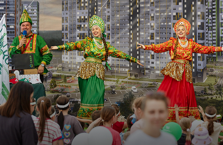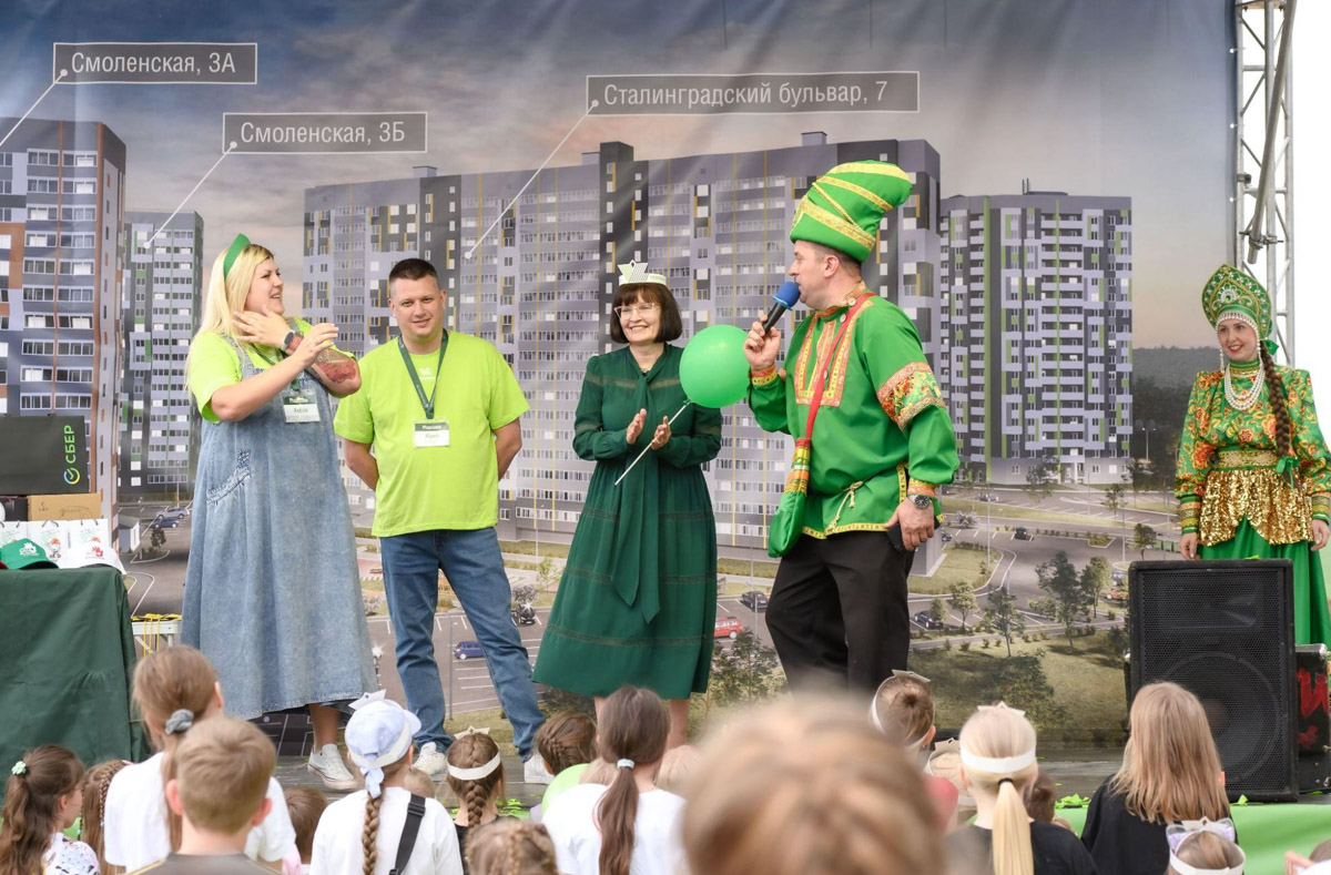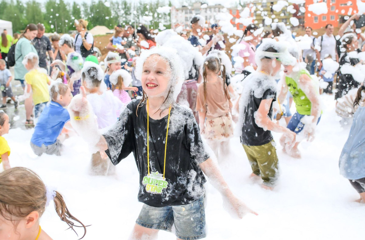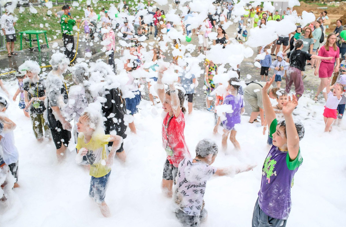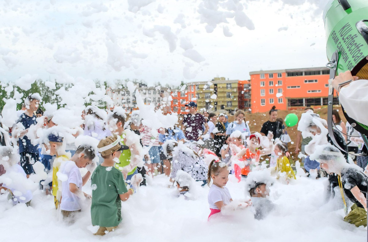 На праздник собрались все: и те, кто уже живет в новых домах, и те, кто только собирается стать резидентом. И даже просто заехавшие «на минутку» остались. А как уехать, когда детей ждут медали, взрослых — скидки на квартиры, а всех вместе — пенная дискотека с мыльными пузырями?