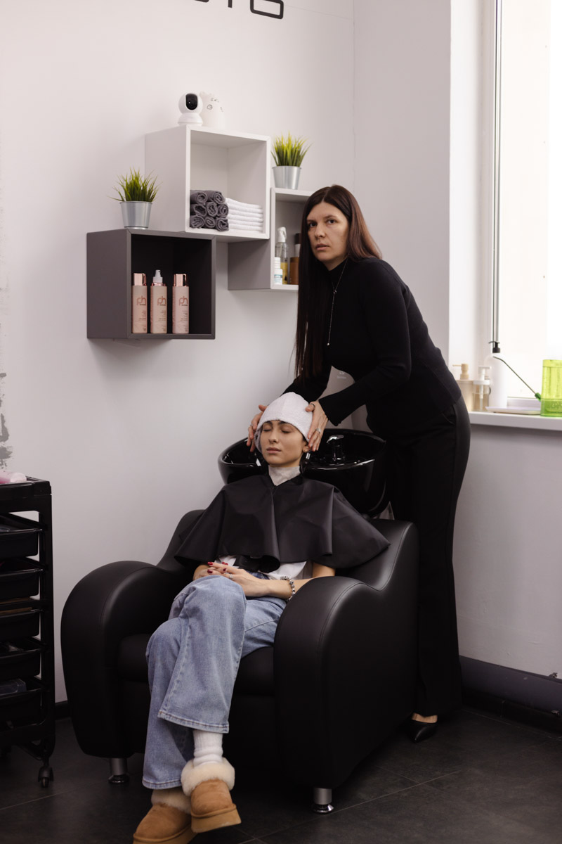 «Мне хотелось быть профессионалом в сфере реконструкции, — признается наша собеседница. — Я прошла обучение на технолога и вступила в команду Floractive. Оказавшись в мощном окружении коллег, еще больше поверила в свои силы и через месяц уволилась. Ко мне не стояла очередь из клиентов, не было накоплений. Последние деньги мы потратили на открытие студии. Почти весь ремонт выполняли самостоятельно, интерьер пытались сделать красивым с минимальными вложениями: диван, самый простой, купили в „Икее“, стол смастерили из ящика от мойки, саму мойку и кресла выбрали удобные из недорогих вариантов — лично тестировала их перед покупкой. А вот на инструменте не экономили. Это мой личный пунктик. Все утюги, фены, расчески, кисти и прочие мелочи обязательно топовые. И, конечно же, только лучшие составы для выпрямления и восстановления».