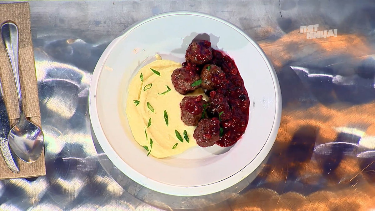 Первым заданием на программе стало приготовление коттбулара — фрикаделек с брусничным соусом по-скандинавски, которые Света решила украсить перышками лука. Глядя на то, что получилось в итоге, Ивлев строго спросил, почему же она не добавила в мясо хлеб?