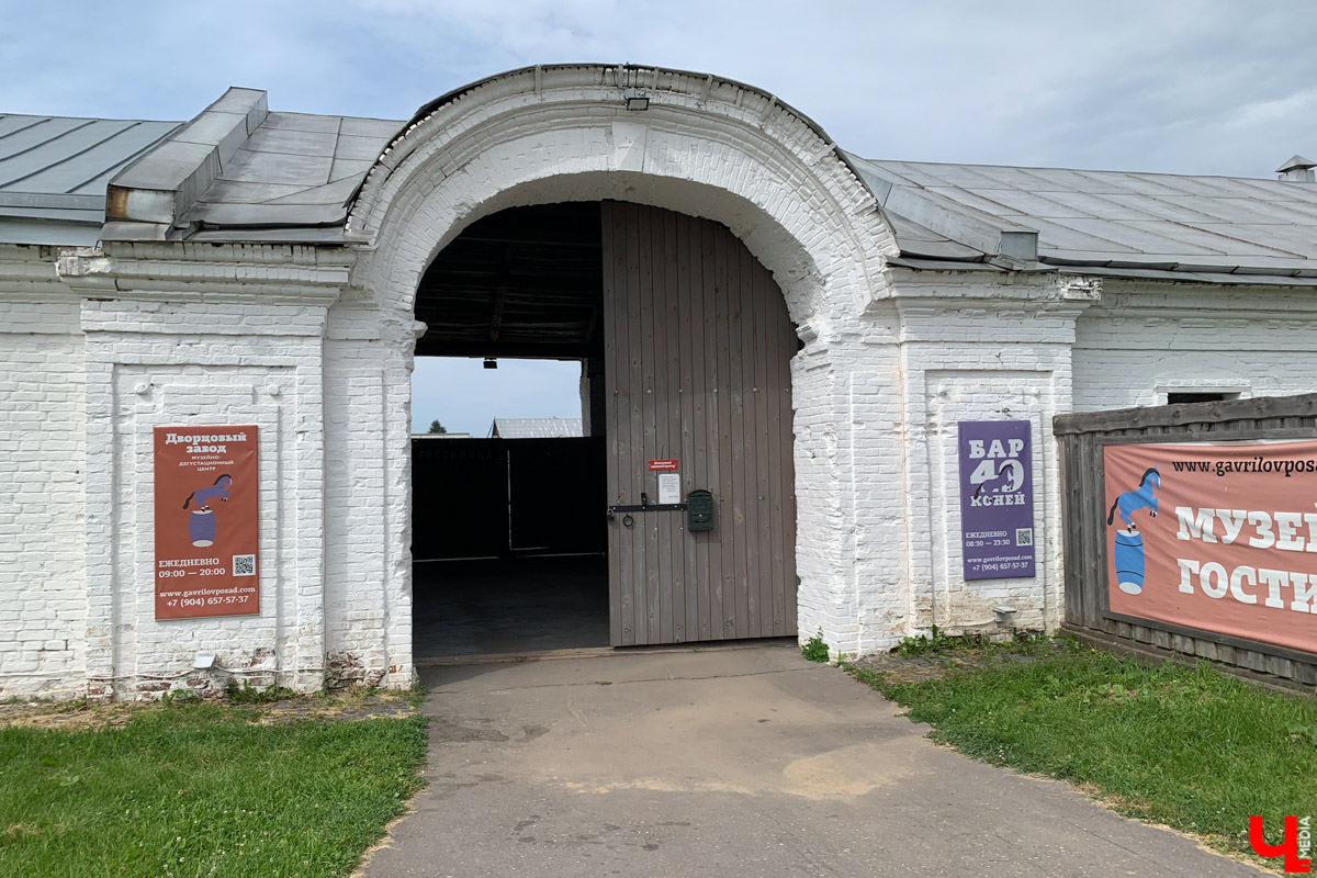Особое для Гаврилова Посада место — ансамбль дворцового конного завода, сейчас — Музейно-дегустационный центр «Дворцовый завод». Массивное белое здание невозможно не заметить: главный опознавательный знак — флюгер с поднявшимся на дыбы скакуном. Все говорит о том, что именно здесь когда-то вывели владимирских тяжеловозов. Часть ансамбля — конный двор и канцелярия — была построена в стиле классицизма в 1776 — 1787 годах. Сейчас там помимо музея и дегустационного зала, где можно попробовать более 20 русских традиционных напитков, работает еще и гостиница.