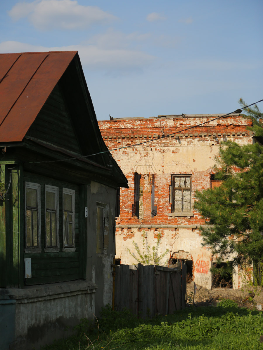 Одни руины обретают второе дыхание, как Заполицкая ГЭС, другим суждено навсегда уйти в страну теней. К сожалению, у дома Каратыгина в Муроме на улице Тимирязева мало шансов ожить, хотя попытки реконструировать его предпринимаются. Как минимум устные. Но слишком долго купеческая усадьба была лишена должного внимания, и результат налицо — от шикарного двухэтажного особняка остались лишь стены с отголосками прежнего лоска. В один из теплых дней они попали в кадр фотографа из Питера Ирины Казанцевой, чтобы остаться на полках истории.