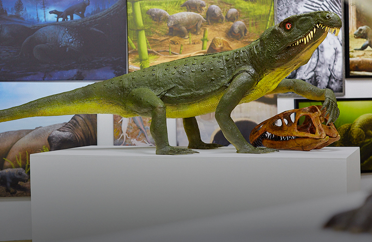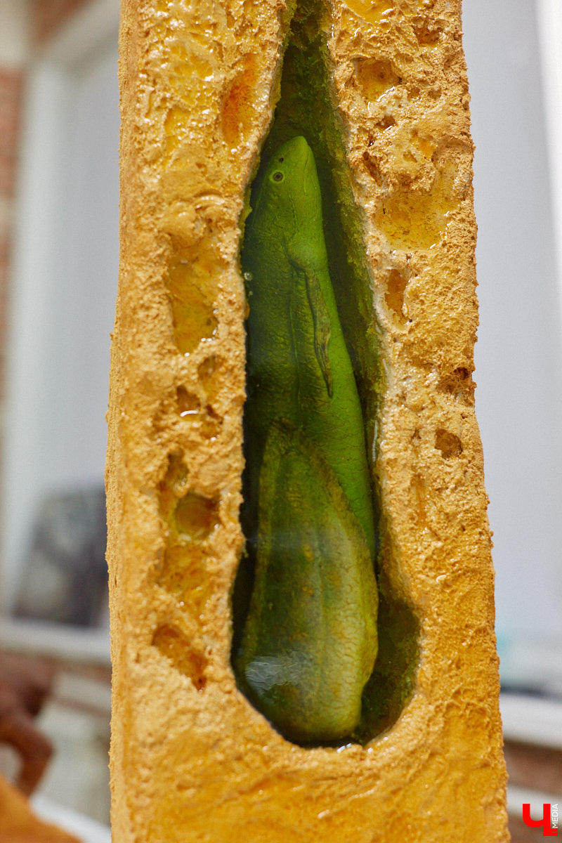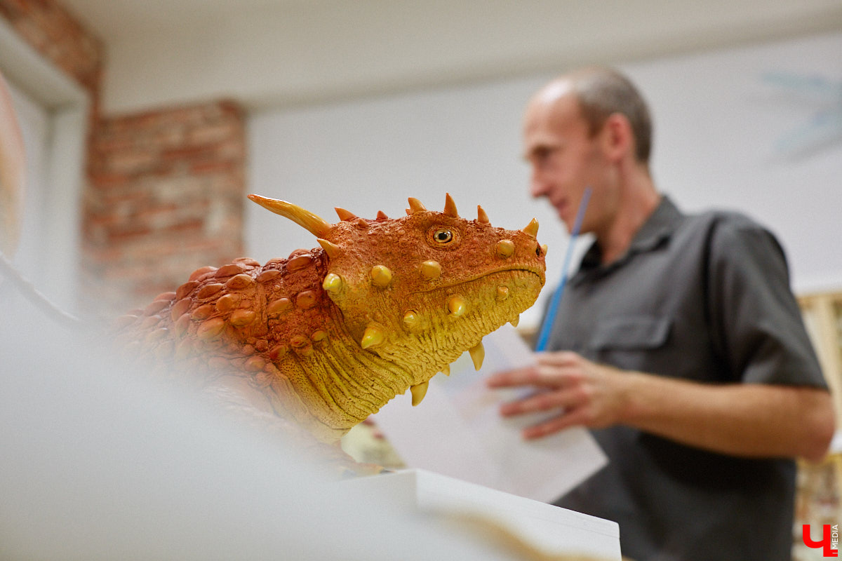 Алексею важно показать каждого животного в натуральную величину и максимально реалистично. За помощью он обратился к палеореконструктору. Такие специалисты занимаются полным воссозданием исторических существ. Глядя на скульптуры в музее, можно не сомневаться, что именно такие чудища когда-то передвигали лапами по земле. К слову, если разрезать фигуру надвое, перед взором предстанет реальный череп архозавра, напечатанный на 3D-принтере. Впрочем, лучше поверить нам на слово.