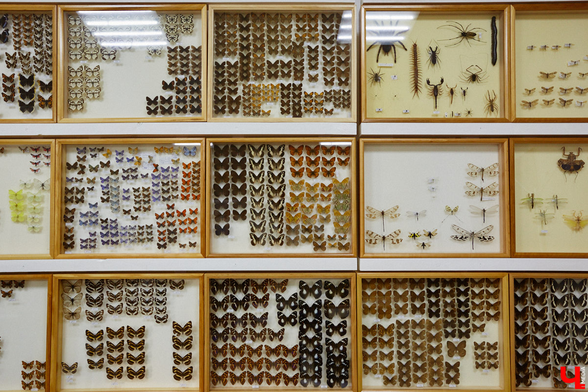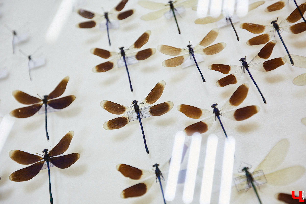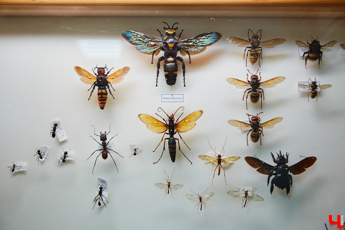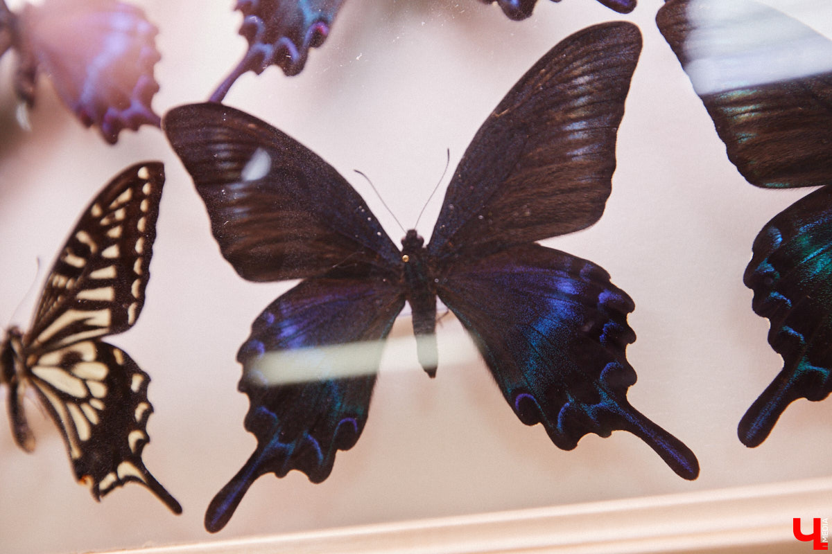 Еще одна страсть нашего героя — насекомые. В частности, бабочек он начал изучать в десять лет, а сейчас его коллекция насчитывает больше сотни видов! В музее представлены и местные красотки, и удивительно раскрашенные природой экзотические экземпляры. У некоторых на крыльях можно заметить яркий рисунок для отпугивания птиц. Например, цепляет взгляд бражник глазчатый и узнаваемая «мертвая голова».