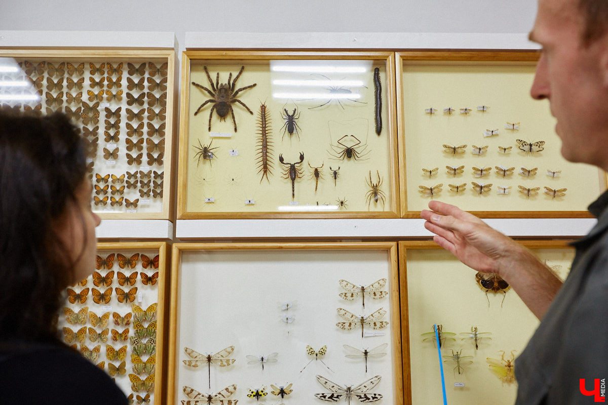 Владимирец чувствует себя в музее как рыба в воде. Готов долго рассказывать о каждом виде бабочек и всегда найдет в закромах удивительные факты об окружающем нас мире — хоть современном, хоть доисторическом. Посетить выставку точно стоит, ведь Алексей готов делиться знаниями со всеми желающими. Для этого необходимо договариваться о встрече с нашим героем лично.