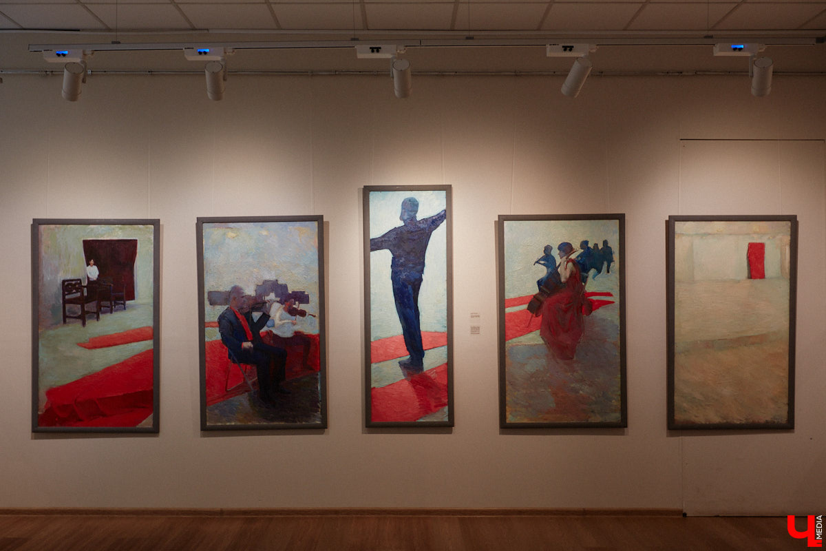 «На картине запечатлен момент перед выступлением, когда эмоционально только готовишься к нему, затем уже сам концерт и финальная часть. Все эти ощущения следовало уложить в одну работу: дирижера, который удерживает оркестр, и прощальную ноту с пустым залом, — поясняет девушка. — Сквозной нитью проходит красное полотно, конечно, его нет на сцене, драпировку добавила я. Оркестранты шутили, что это кровь. На деле — очень привлекательный цвет, который задает ритм».