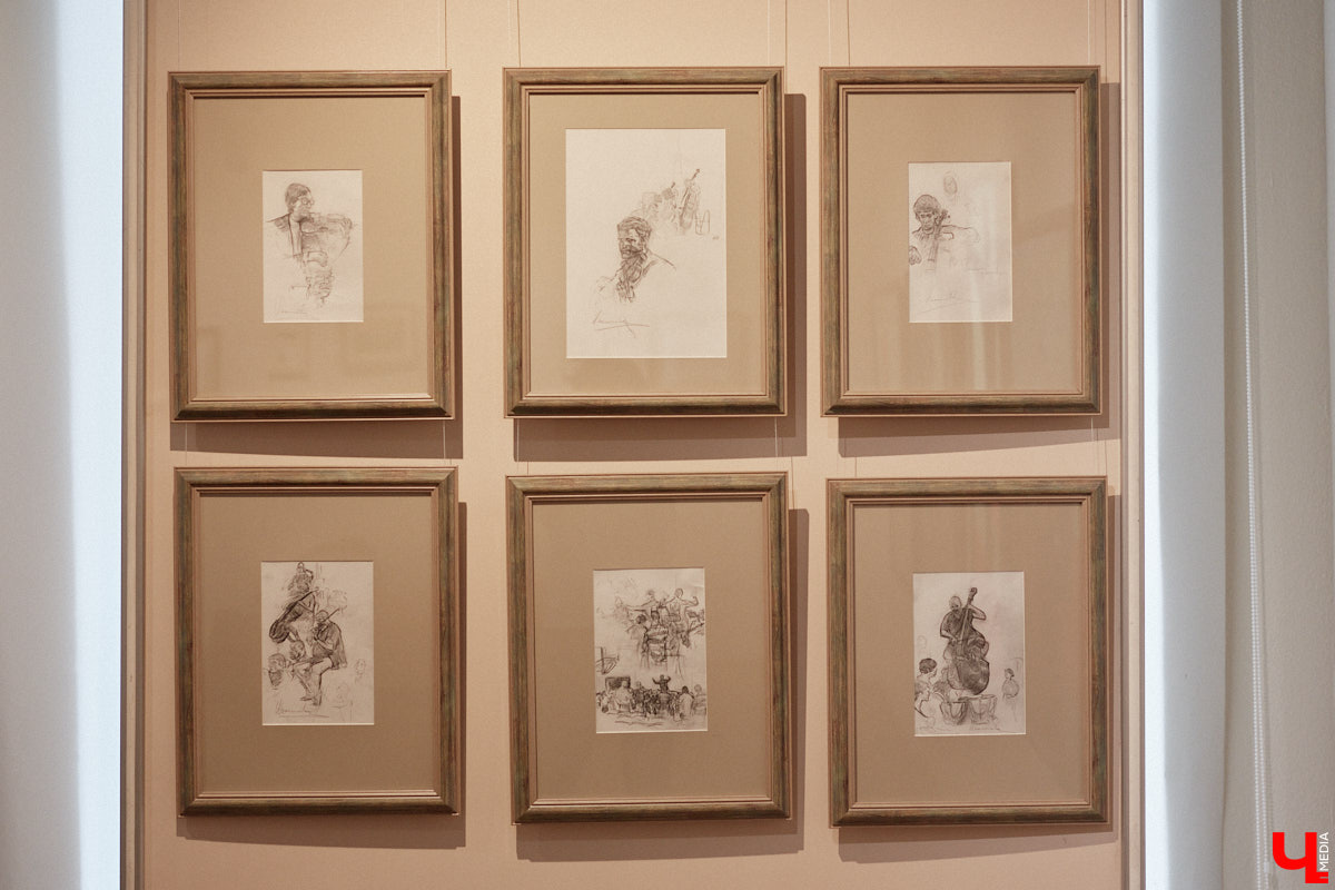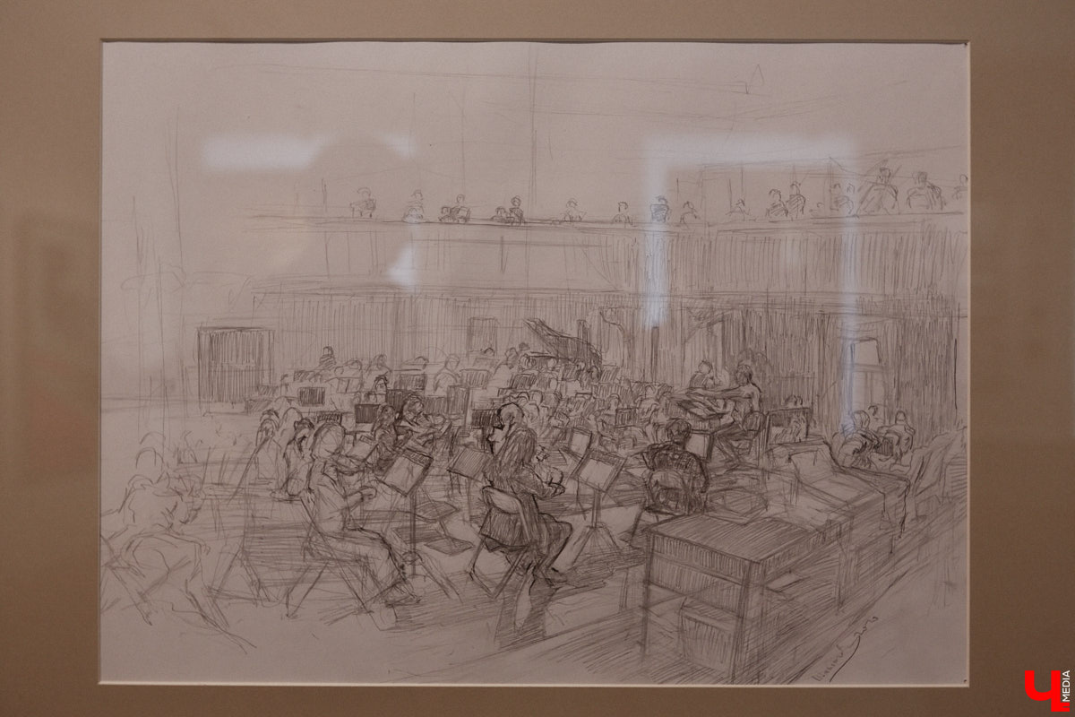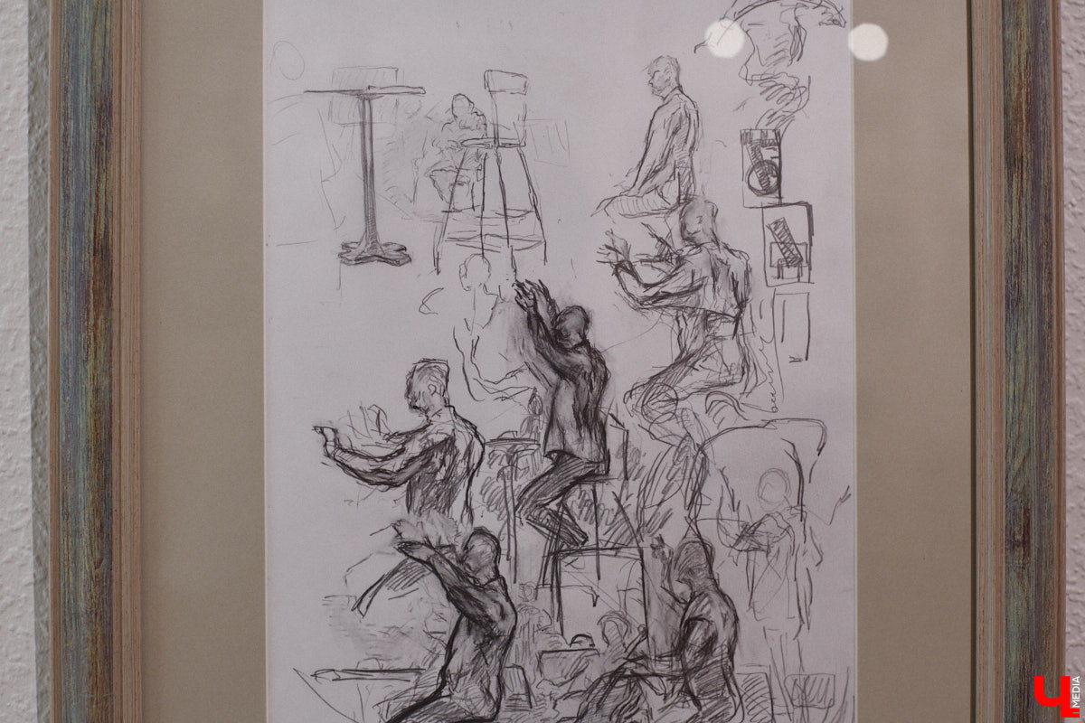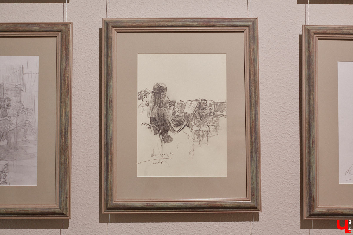 Есть на выставке и много других эскизов, в основном с фестивалей и музыкальных экспедиций. За девять лет жизни с оркестром Даша старалась не пропускать его выступления даже на выезде. Она слушала музыку и рисовала, как чувствовала.