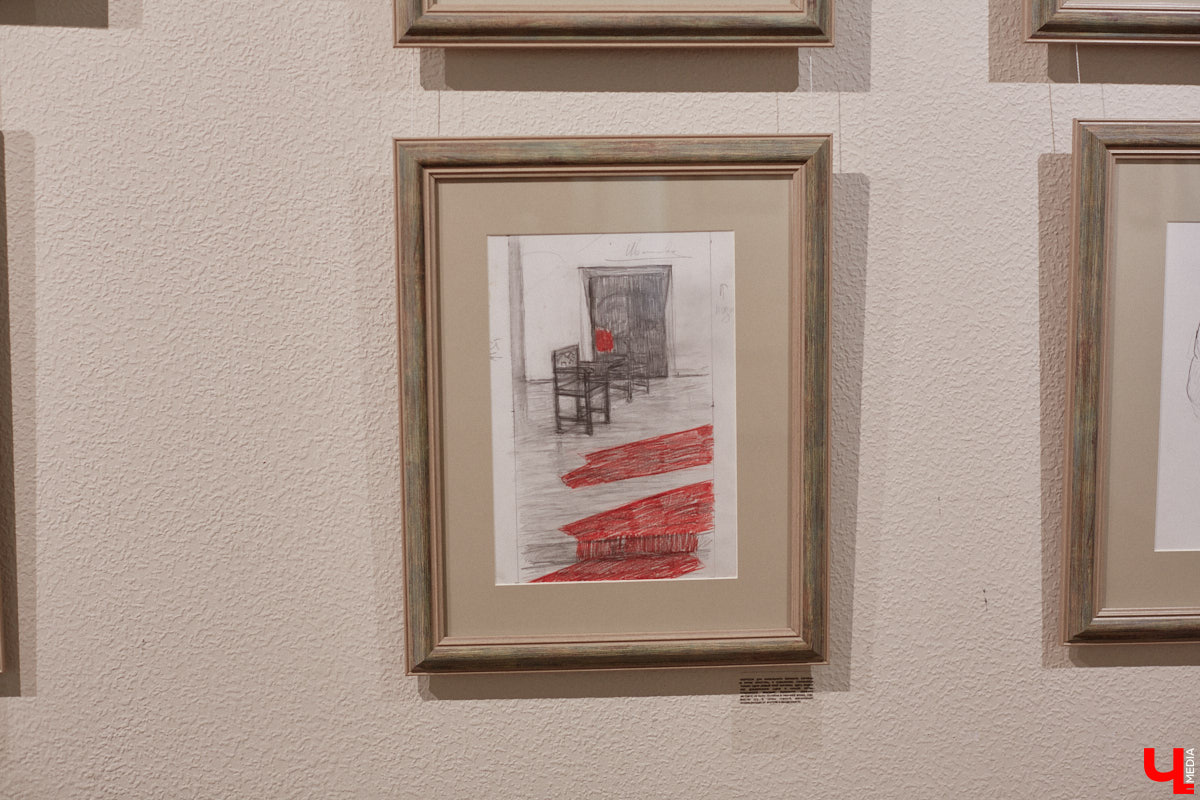 На выставке вообще много разного Маркина. То он в кабинете, то смотрит кино, то слушает музыку и разбирает произведения. Дарья заметила, что все движения, если присмотреться, цикличны. Поэтому ее зарисовки — попытка поймать повторяющиеся движения.