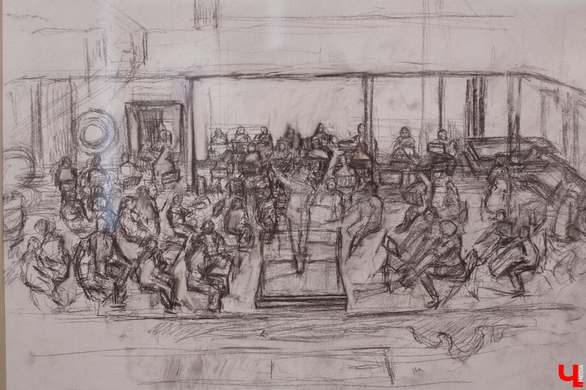 «Вот, например, пианист, попробуй его нарисовать за полтора часа, пока идет концерт. Он постоянно двигается, сложно за ним успеть. Но я поняла, что люди в эмоциональном состоянии возвращаются в одну точку. Я начинаю на выступлениях одновременно несколько набросков, — рассказывает художница. — Обычно, когда я рисую портрет, сажаю людей в одно и то же место, у меня оно даже помечено маркером. Здесь так не получится. Ряды те же, но люди все время двигаются, никогда ничего не совпадает, и тебе надо за раз все сделать, второго шанса не будет. С оркестром работать как жизни учиться: либо сейчас, либо никогда!»