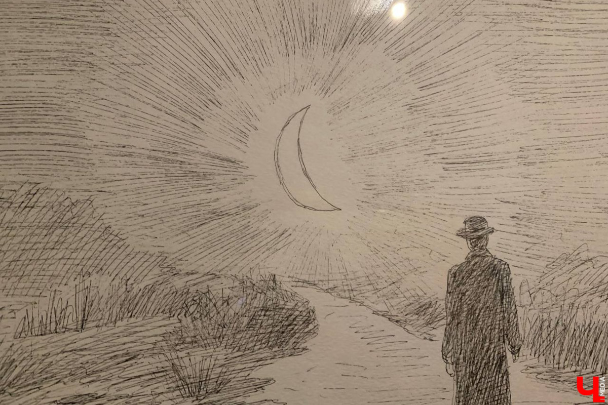 Истории луны и ее художника рассказывает черно-белая графика на стенах залов. Эта смысловая связь между выставочным пространством и уличными инсталляциями раздвигает рамки привычного понимания современного искусства. Она выводит отношения художник — зритель на новый уровень взаимодействия уже как равноправных и взаимодополняющих партнеров.