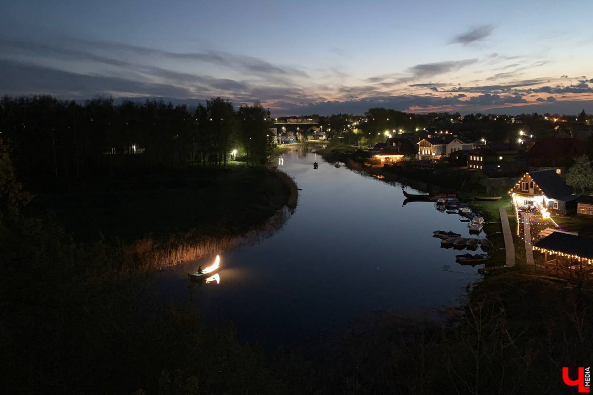 Такого Суздаль еще точно не видел! Гигантская сверкающая луна медитативно, словно в каком-то мистическом сне, проплывает по Каменке. Она отражается в сумеречных водах и от того кажется еще больше. На веслах — человек, зрители угадывают силуэт в ярком сиянии. Это герой литературно-визуальных историй писателя, художника, фотографа и мастера световых инсталляций Леонида Тишкова. Его имя знают далеко за пределами страны. Везде, где когда-то он оставил свой след в рамках проекта «Частная Луна». Уникальный перформанс длится уже более 20 лет. Художник создает объекты в виде небесного светила, путешествует с ними по миру и фиксирует эти моменты на фото. И вот наконец судьба привела его с ними и в Суздаль.