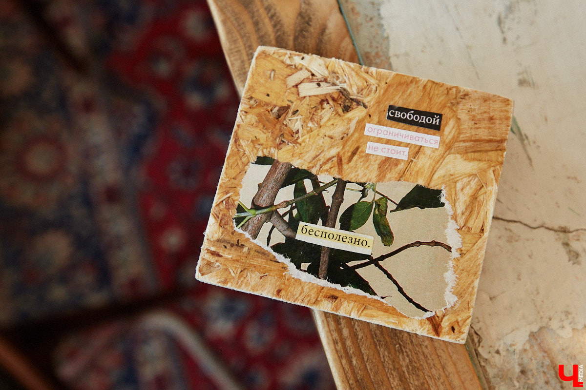 Работы героини нашей истории уже успели завоевать сердца владимирцев и выйти за рамки родного города. Лингвиста по образованию и творческую личность с юных лет увлекали вырезки из журналов и буквы, сплетенные во фразы. В 2021 году она начала дарить друзьям открытки с собственными коллажами. Каждая вырезана вручную, а потому уникальна. Постепенно их стало так много, что Мария решила: плодами своего хобби нужно делиться со всем городом.