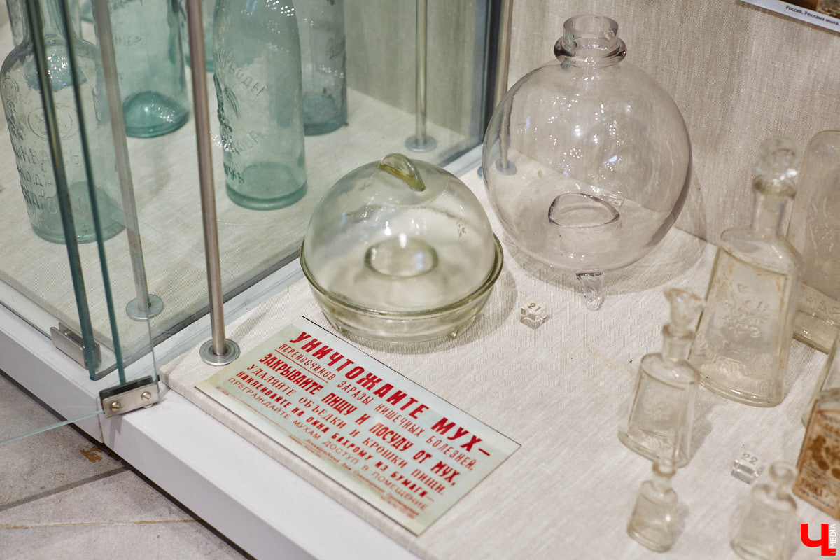 В музее целый стенд, посвященный флаконам для духов, уксусов, сиропов и аптечной продукции. Например, фиолетовые бутылки специально делали для острых настоев, чтобы случайно не перепутать.