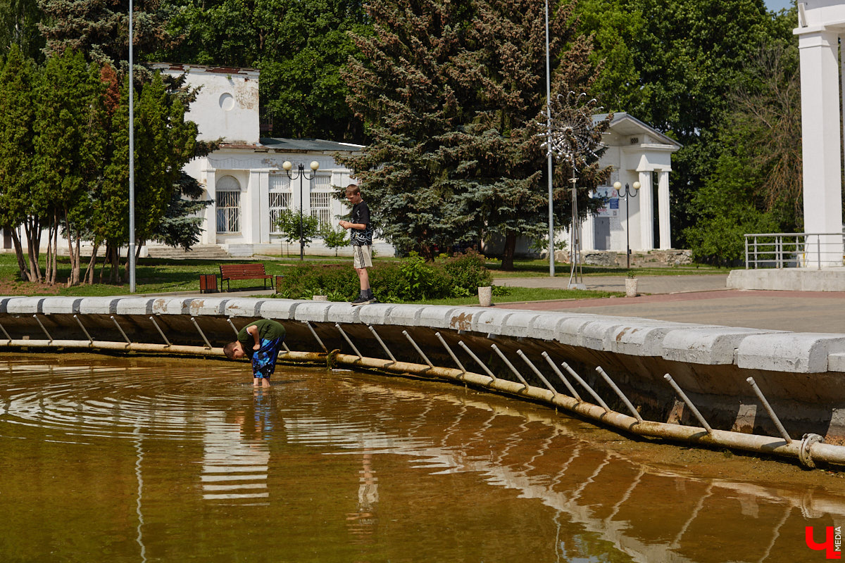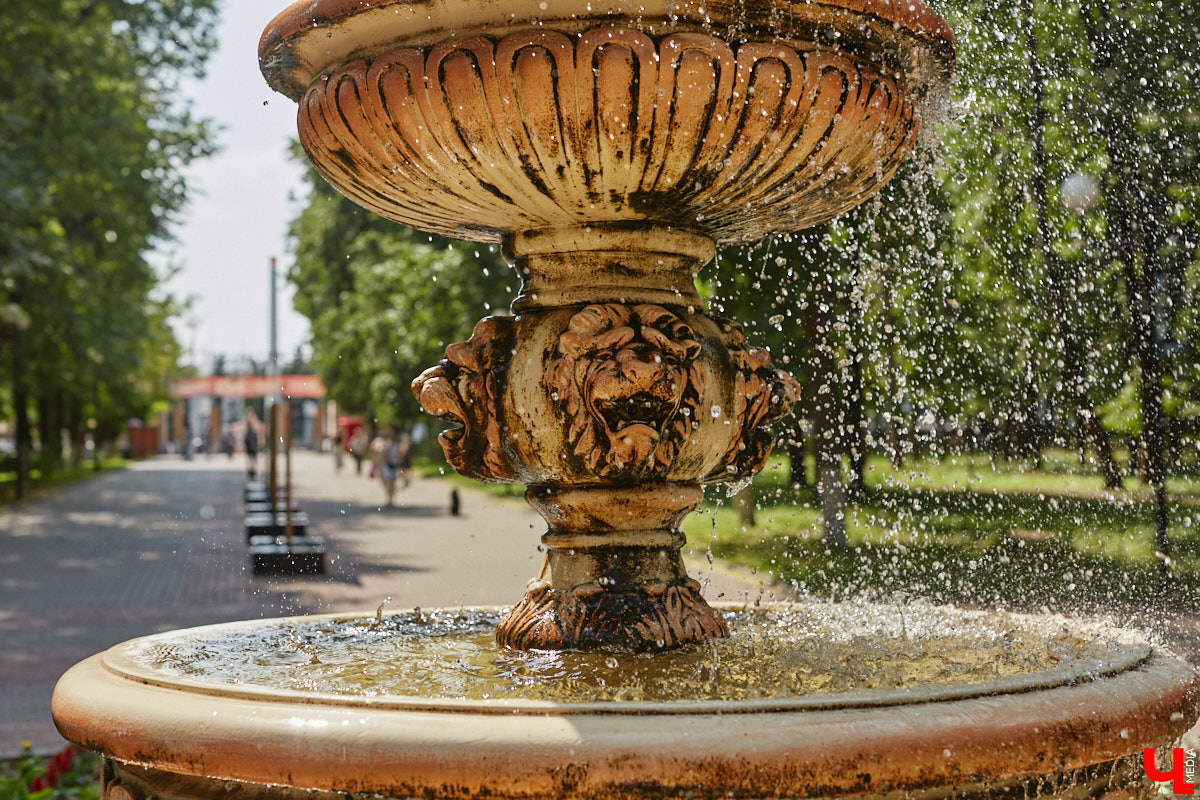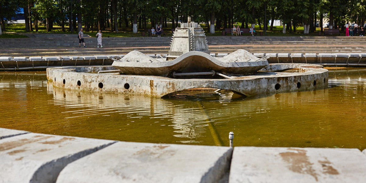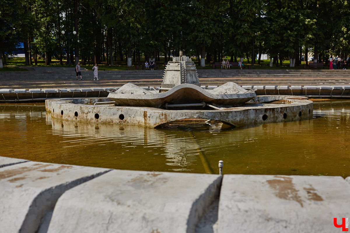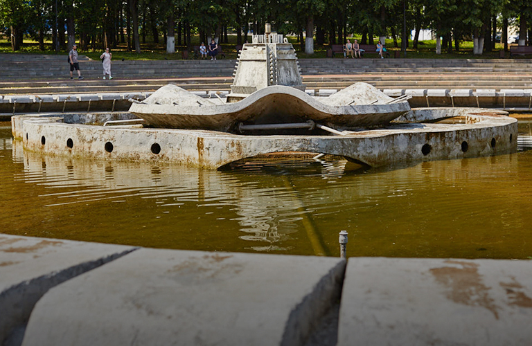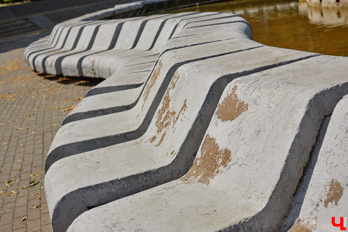 К слову, о фонтанах. Как мы знаем, их в зоне рекреации два: малый и большой. Первый находится в ведении парка, второй — на балансе водоканала, который его обслуживает. И гигант на центральной площади явно нуждается в реконструкции, причем давно. Если издалека он смотрится неплохо, интересен по форме и хорошо вписывается по размерам, то вблизи заметны все трещины и сколы. Увы, покраска объекта проблем с его внешним видом не решает. А ведь много лет назад он даже радовал отдыхающих светомузыкой.