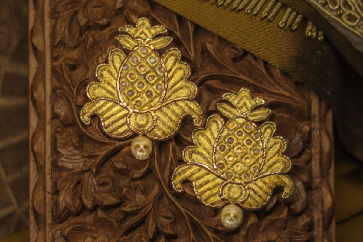 Если вам показалось, что серьги напоминают ананас, вам не показалось. Семен в микроблоге рассказал, что еще в XVII веке его начали выращивать в России. Конечно, доступен экзотический фрукт был только избранным, а потому стал символом изобилия и начал вдохновлять мастеров. Его образ нашел отражение в росписи, металле и народном костюме.