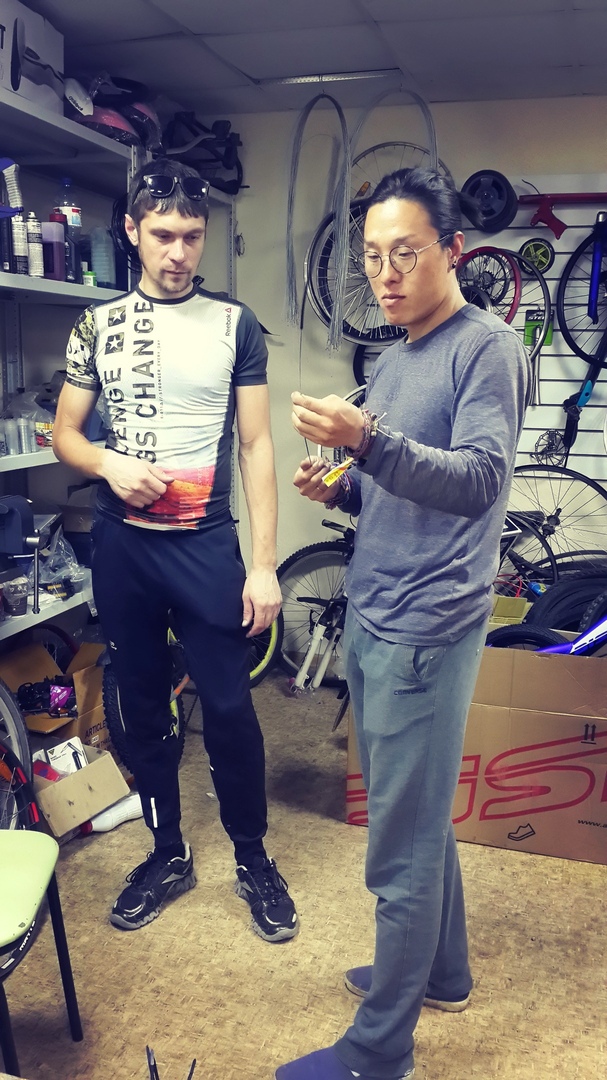 Наутро Пак и чета Коротковых отправились в велосервис “Самоката” для решения всех технических вопросов. Велосипед — один из лучших американских турингов марки “Surly”, на котором турист проезжает не более 100 км в день.
