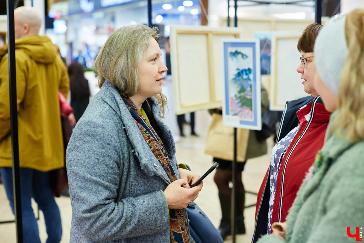 Получив заманчивое предложение от ТК «Мегаторг», руководитель студии живописи Алина Власова собрала работы своих учеников, привезла на площадку и даже поучаствовала в их монтаже. Пилотное мероприятие молодого арт-пространства во многом состоялось благодаря ей.