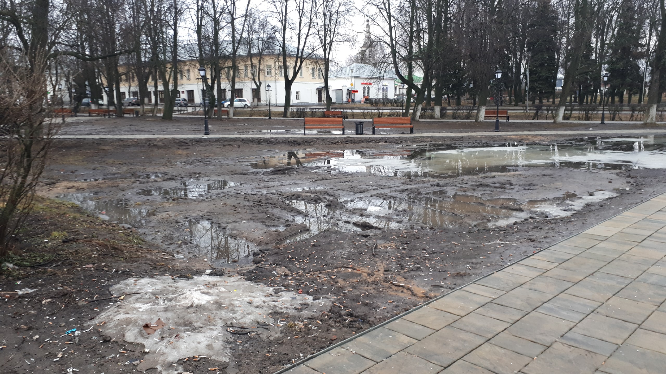 Пришлось мэру давать пояснения, прозвучал термин «морозное пучение». Мол, из-за перепадов температуры покрытие «не прижилось». Так что работы придется повторять сначала: