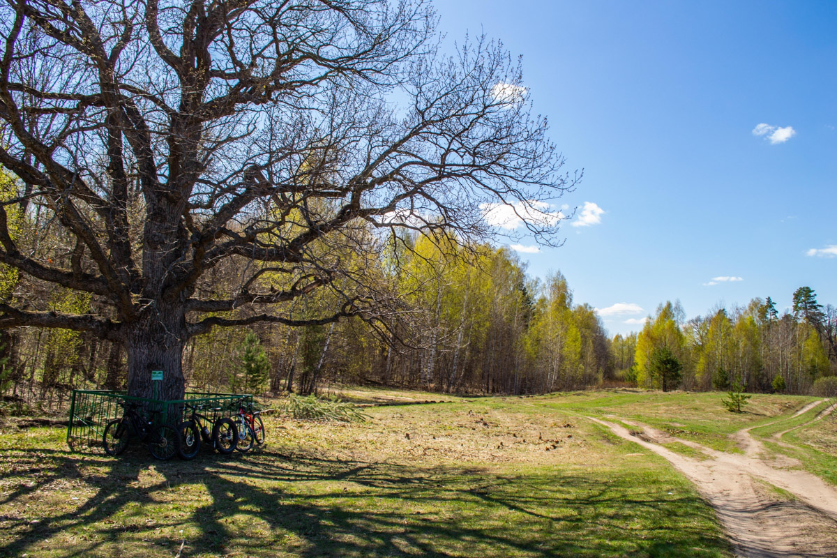 Самый близкий вариант для местных велосипедистов. Для старта придется доехать на электричке до Коврова, затем открыть карты и чуть-чуть поизучать местность. Самую красивую точку, смотровую площадку Венец, Аня заботливо приложила к делу.